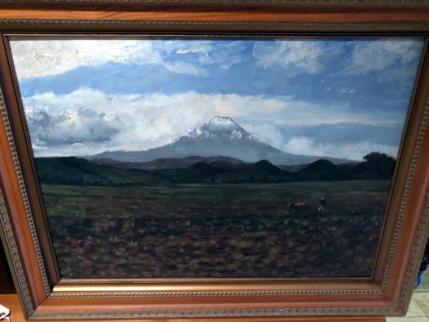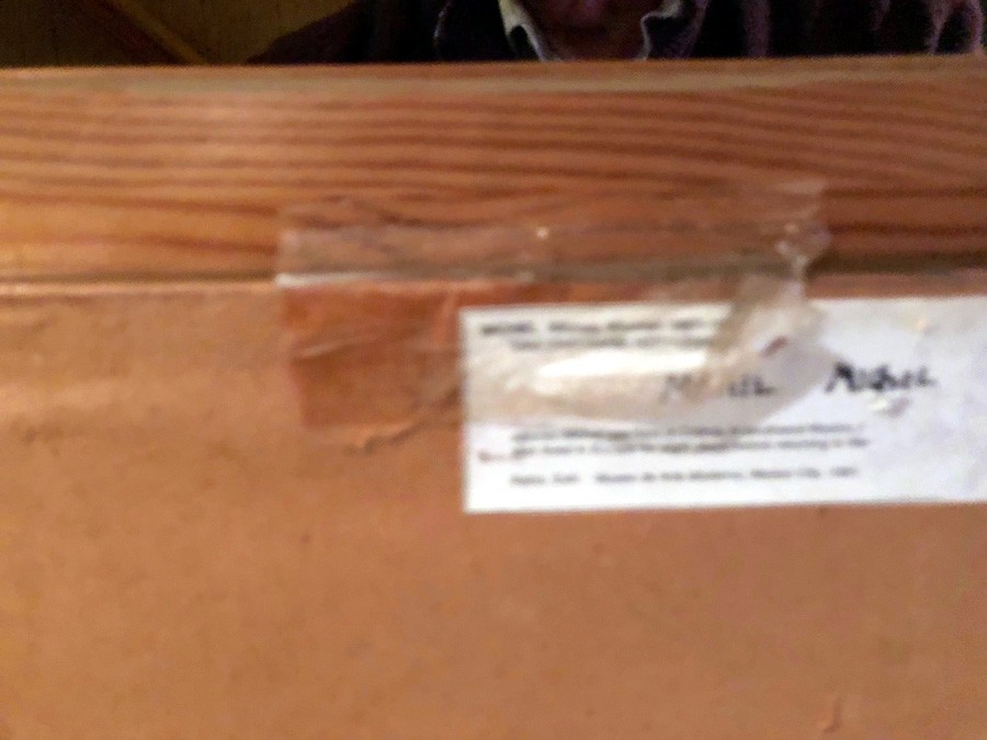 The painting by Alfonso Michel is on board signed lower right and measures 20x26. The painting is also signed on the back by the artist and has a label from the Mexico City Museum
