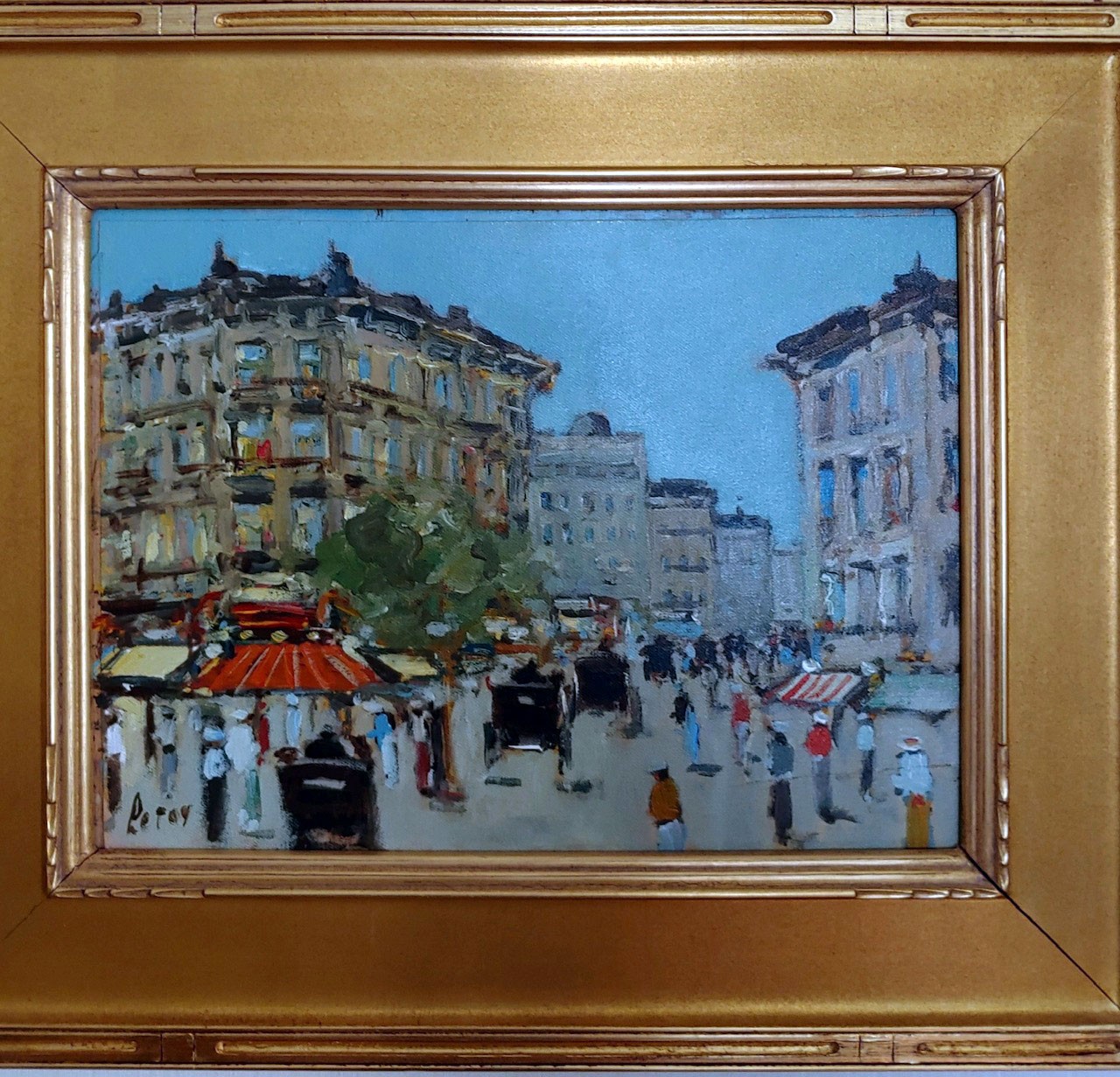 Signed: lower right. Scene: street scene