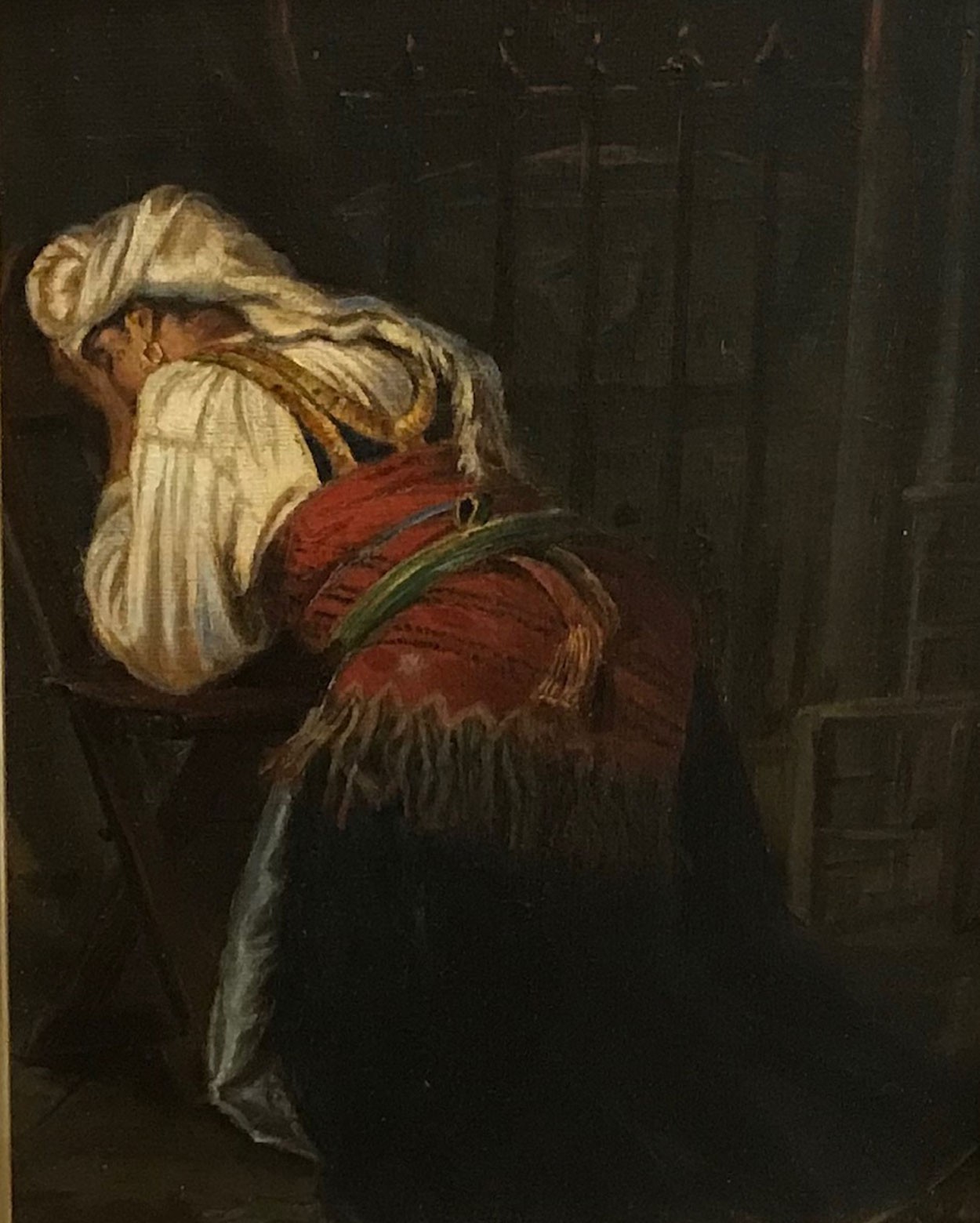 Scene: grieving Alergerian woman mausoleum gate