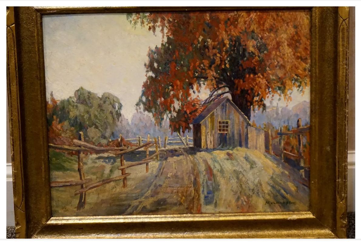 This painting is an oil on board farm scene signed Mulhaupt on the lower right. The painting is in very good condition and measures 14 x 18 framed.