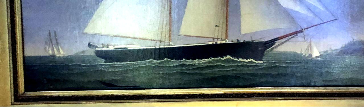 James Babbidge was born in 1844 and died in Maine in 1919.  There is very little biographical information on this artist.   He is known for his ship portraits.  The painting is a ship portrait of the “Commerce” it is an oil on canvas relined, initialed on the buoy