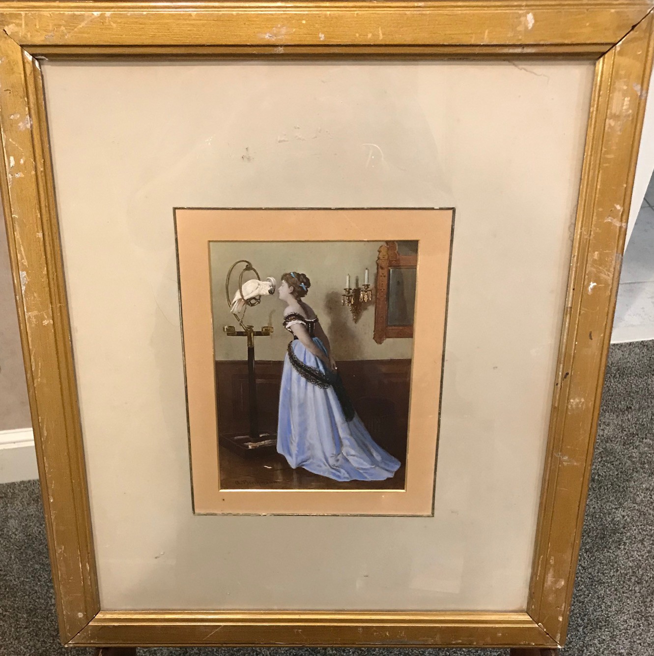 Size:  framed/matted 21.5 x 18. Medium: oil under glass. Signed:  lower left