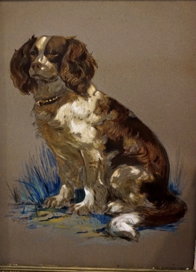 Signed lower left date 1905 scene:  portrait of a King Charles Spaniel