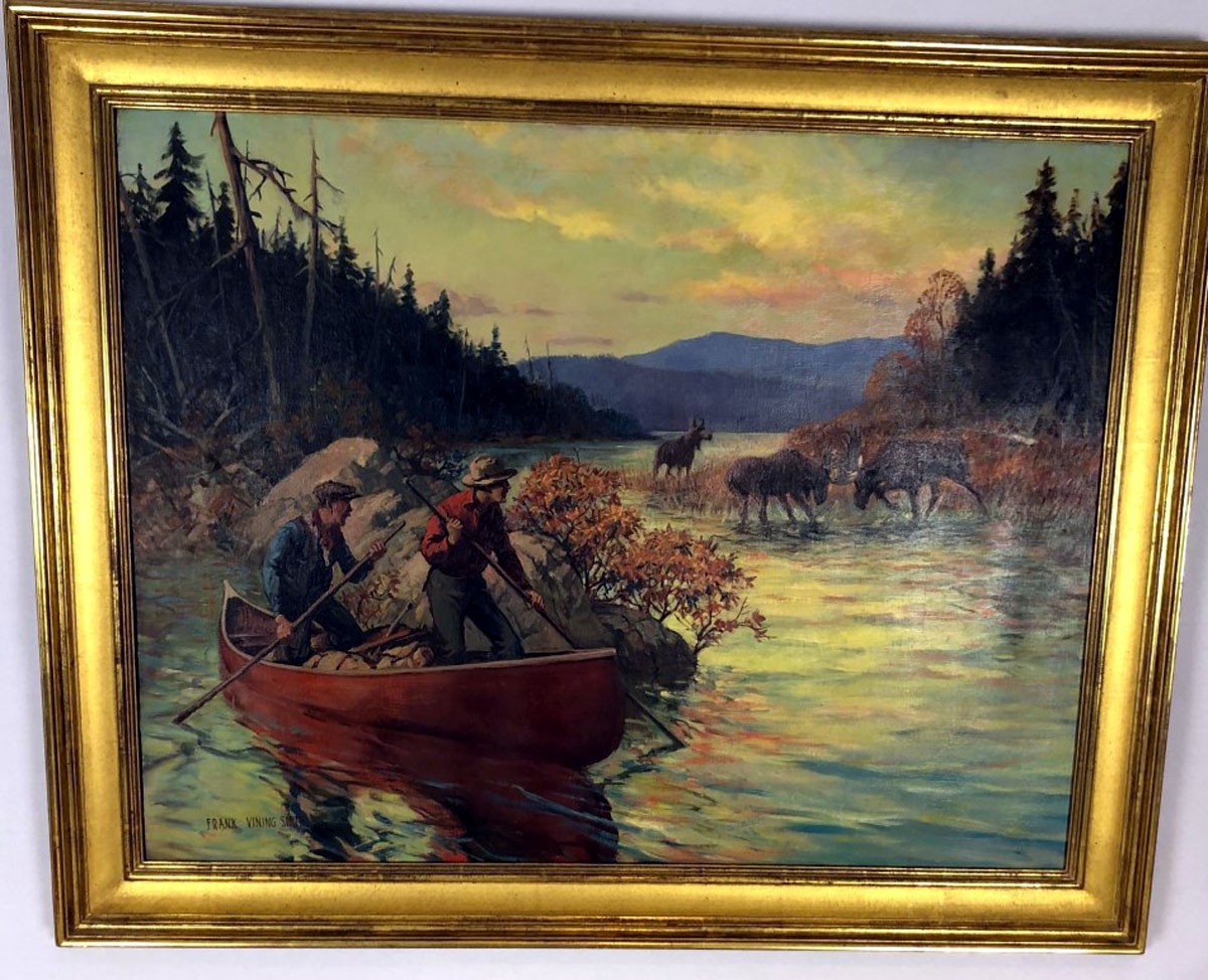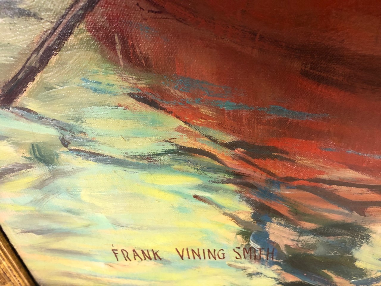 Frank Vining Smith was born in Abington Massachusetts in 1879. He graduated Whitman High School and then attended the Boston School of Museum of Fine Art. They studied with Frank Benson, Philip Hale and Edward Tarbell. During this period of his life, he was an illustrator for the cover of National Sportsman and the Boston Journal and the Boston Herald. He also painted portraits of ships.