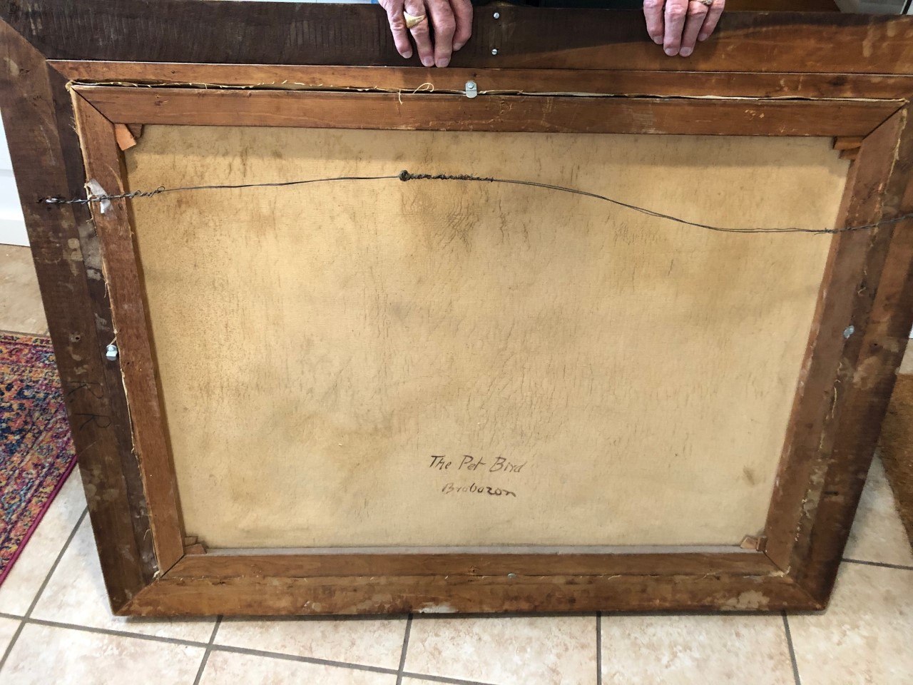 The Pet Bird,” goes by the artist name of "Brabazon". The scene is a family teaching their daughter to train a bird in the air on a string.