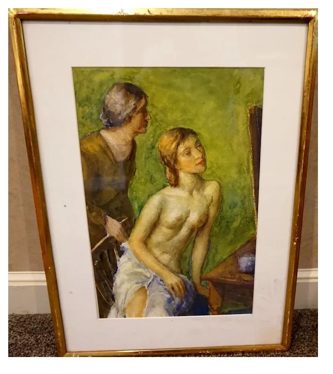 This an original watercolor signed at the top left of the painting. The site measurement of the painting 20 x 13 and the overall measurements with the frame is 28 x 20.5.