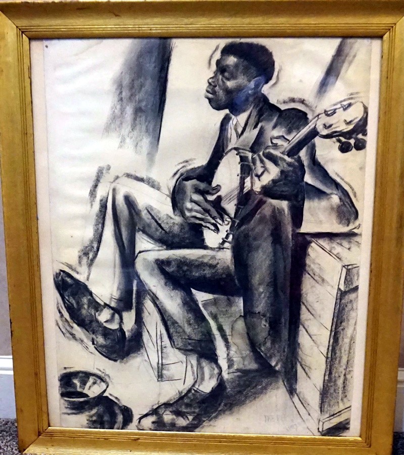 Size:  framed 29x25. Medium: charcoal drawing  Signed:  lower right.