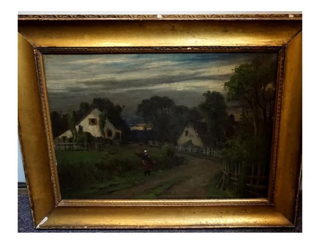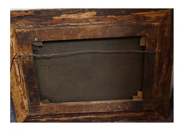 The painting is an oil on canvas signed lower left. The painting measures 18 x 25 in a gold frame that needs a little work. The piece is in good condition.