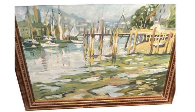 This painting is an oil on canvas, signed lower left, and nicely framed. The painting depicts a harbor scene in Gloucester, MA.