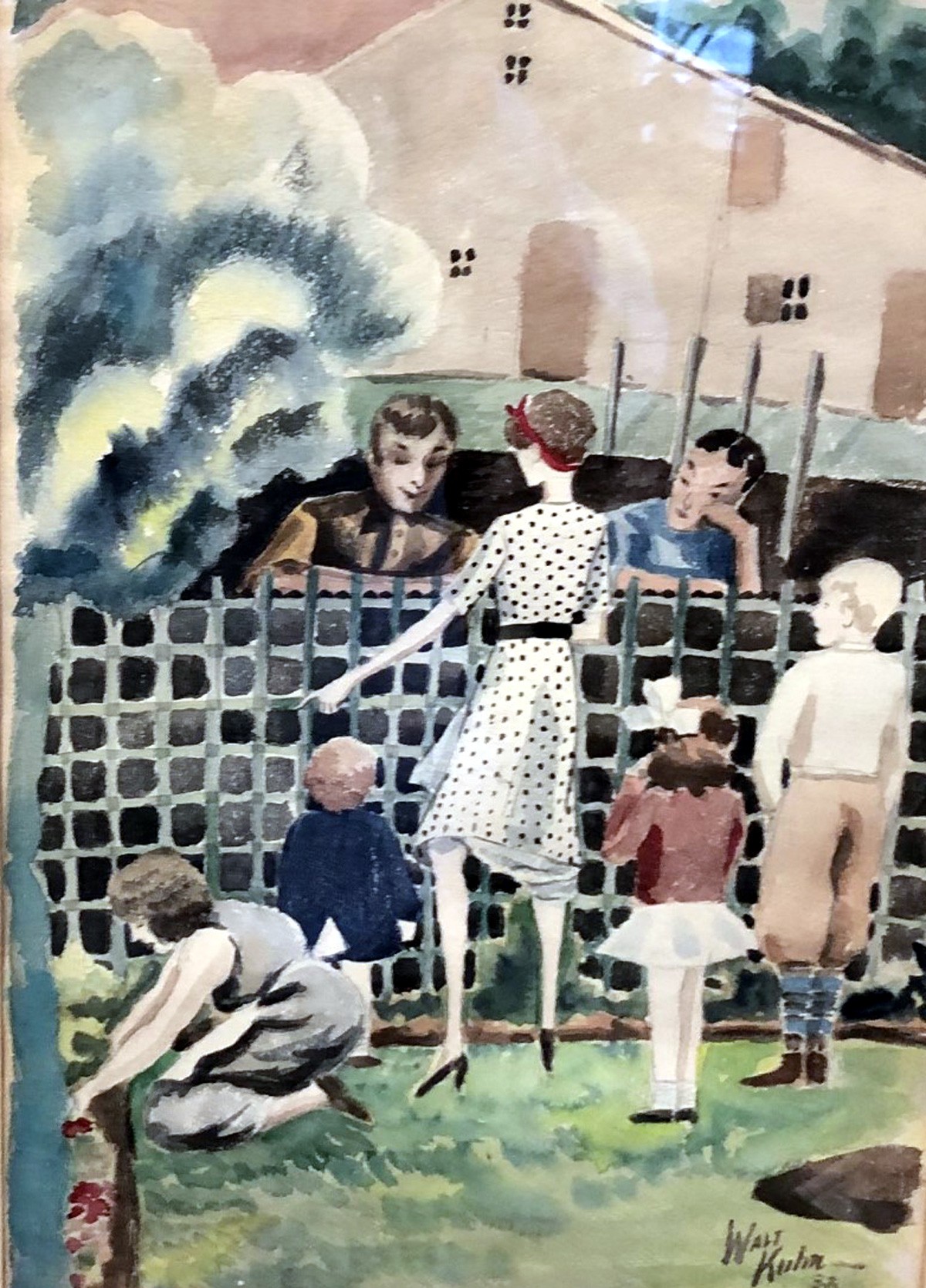 Kuhn was born in New York City in 1877. Growing up near the Red Hook, Brooklyn[1] docks in a working-class family, he was exposed to a range of rough, colorful waterfront experiences in his youth and, though he loved to draw, nothing in his background suggested a future career in art. Kuhn's first jobs were as a proprietor of a bicycle repair shop and as a professional bike racer. At fifteen, though, Walter Kuhn sold his first drawings to a magazine and began to sign his name “Walt.” In 1893, deciding that he would benefit from some formal training, he enrolled in art classes at the Brooklyn Polytechnic Institute.[2]