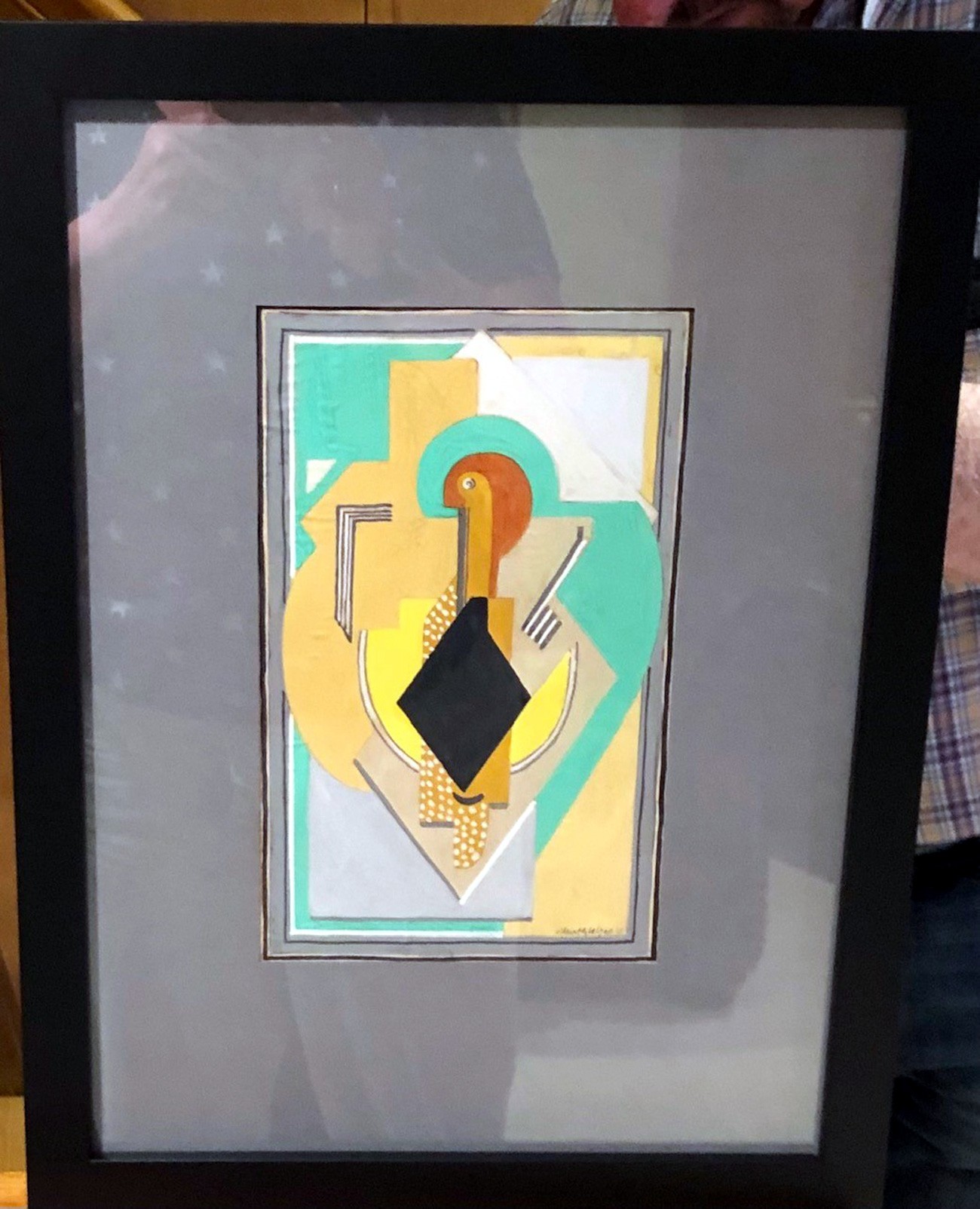 Born in Paris, France in 1881. Gleizes worked with his father in a large industrial design shop that designed fabric. He served in the army from 1902 to 1905 and he started painting seriously. At this time in his painting career, he was influenced by the impressionists and exhibited at the National des Beaux-Arts in 1902. Gleizes came under the influence of Fernand Leger, Robert Delaney and lastly Henri Faucconnier who led him to his cubist style. Gleizes is known for his abstract work and cubist style. Gleizes image is a gouache on paper signed and dated on the lower right. The site image is 7x9 with a grey matte and black frame.