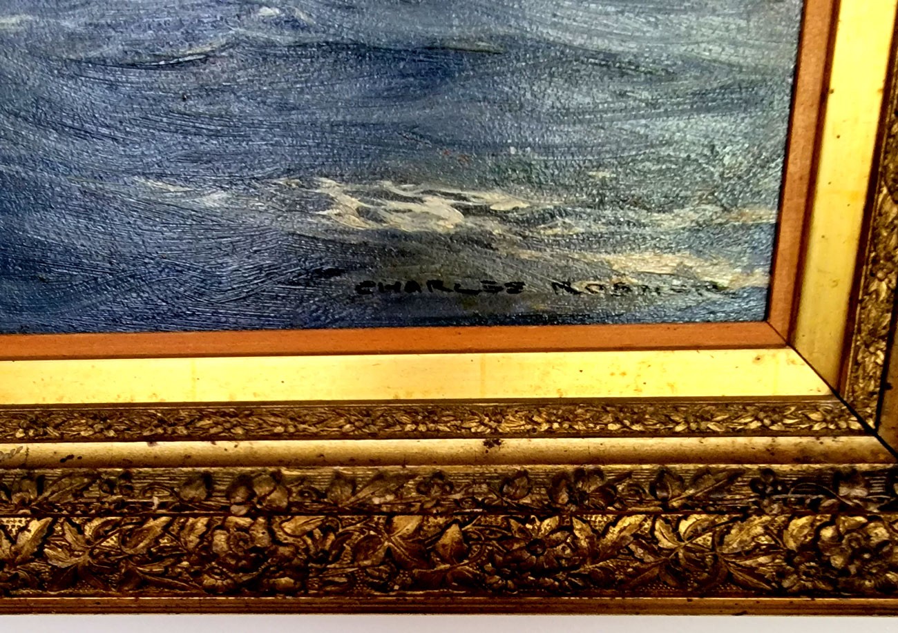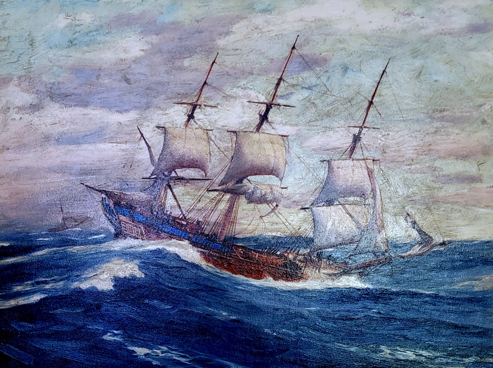 Charles Rosner was born in 1894 in Langendorf, Germany, where he developed a real fascination for the sea and ships. He served aboard several sailing ships that he admired in his youth. He sailed around cape horn an impressive five times before leaving his seaman’s life in Iquique, Peru. He worked in the copper mines during World War I duration. Rosner immigrated to Canada first and then to America. He married in New York City and established a permanent home. He went back to his first love, the sea. He became a full-time marine painter of historic vessels and maritime subjects. He did not get a lot of recognition for his work when he was alive, but he is recognized in several museums.