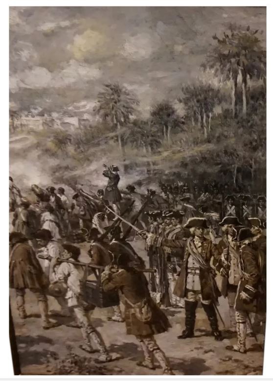 This particular painting is a grisaille of the revolutionary war signed on the lower right hand side. Painting measures 17 x 12 and in excellent condition.