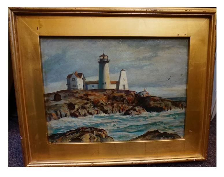 The painting is in very good condition, signed on the right side G.H. Thompson and measures 17 x 21 including the frame.