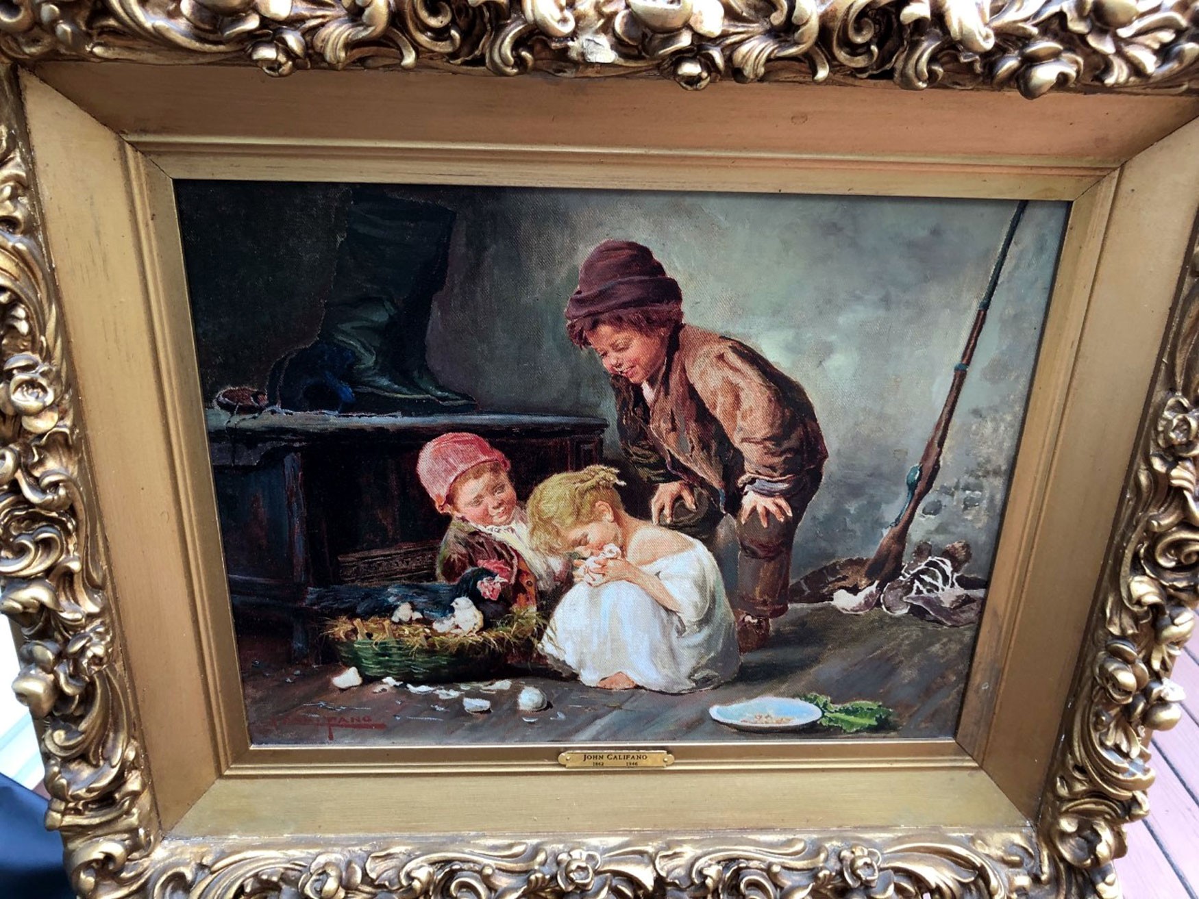 Califano was born in Rome in 1862. He studied with Morelli, and his father, John Edmund Califano. He was known for his genre paintings and landscapes. He migrated to the United States in 1881 and lived in Chicago in 1908, eventually moving to San Fransisco, where he died in 1946. He exhibited at the Art Institute of Chicago and the National Academy of Design in New York.