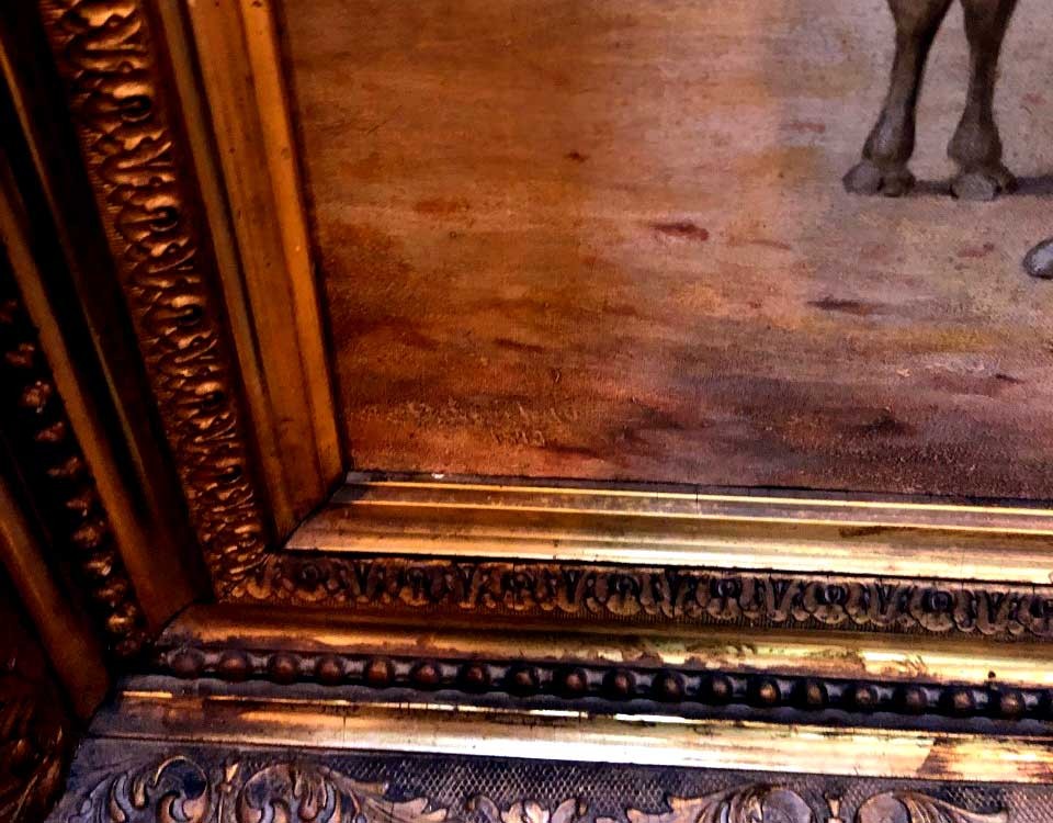 This is a well painted rendering of a camel and rider. It is signed on the lower left of the painting, but we were unable to figure out the signature. It is an oil on canvas painting, nicely framed measuring 32 x 22.