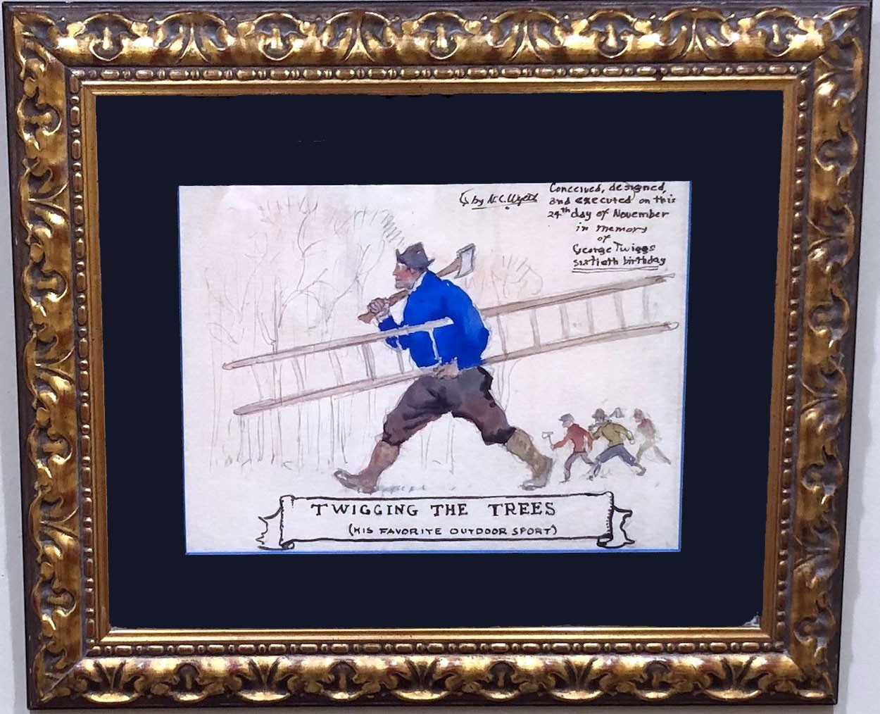 N.C. Wyeth was one of the most famous American illustrators.  Wyeth’s commemorative illustration for his friend George Twiggs for his sixtieth birthday.  Wyeth only painted American scenes as he once was quoted “you will not see anything foreign in any of my paintings.