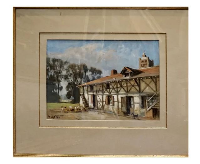 The painting is gouache on paper of a house in Normandy, France. The artist is Emile Wegelin (1875-1962) he is a French artist. The painting measures 14 x 20 in a gold frame under glass. The painting is in excellent condition and ready to hang in your home.