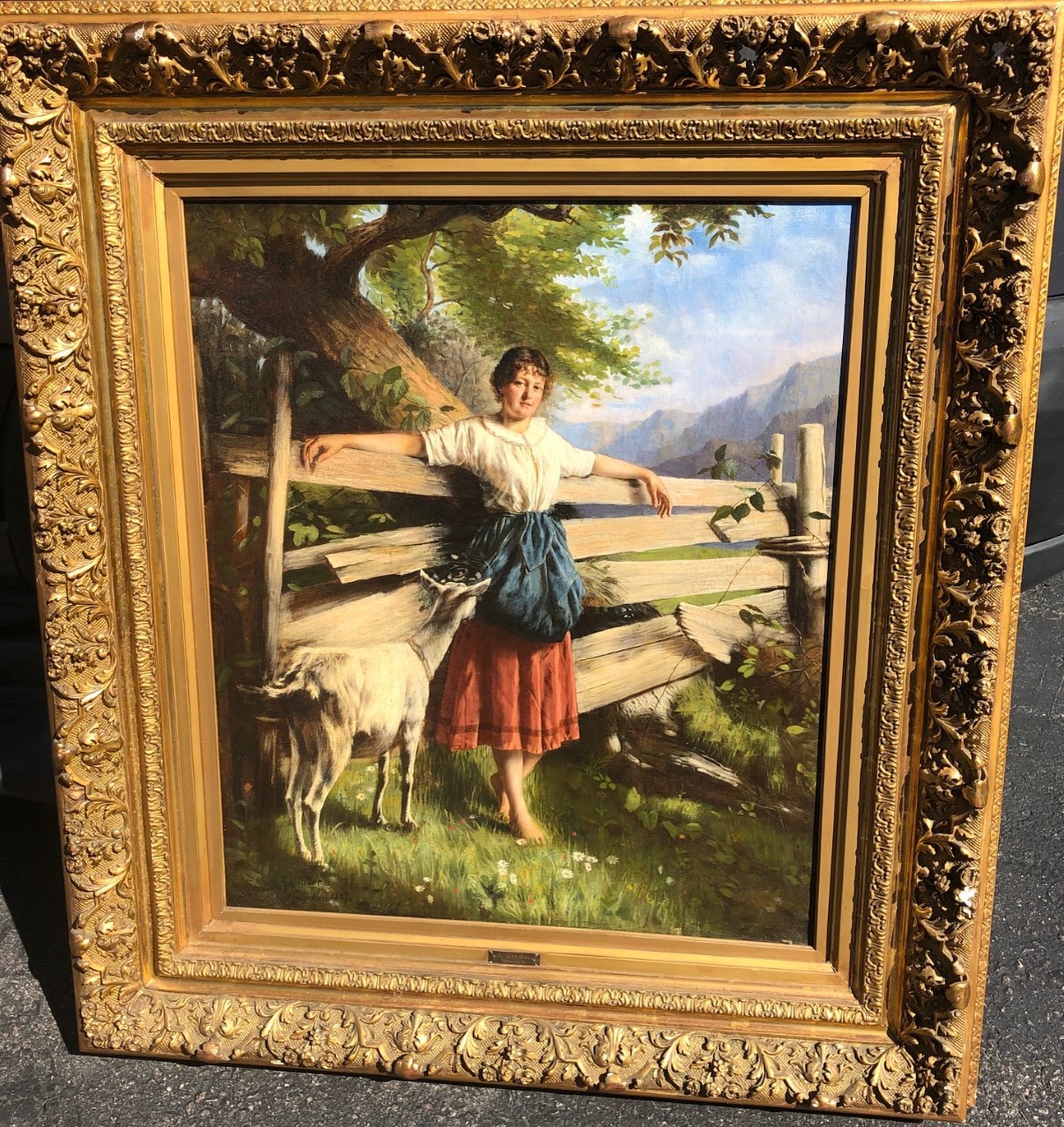 Signed: lower left Dated: 1887. Scene: peasant girl with goat