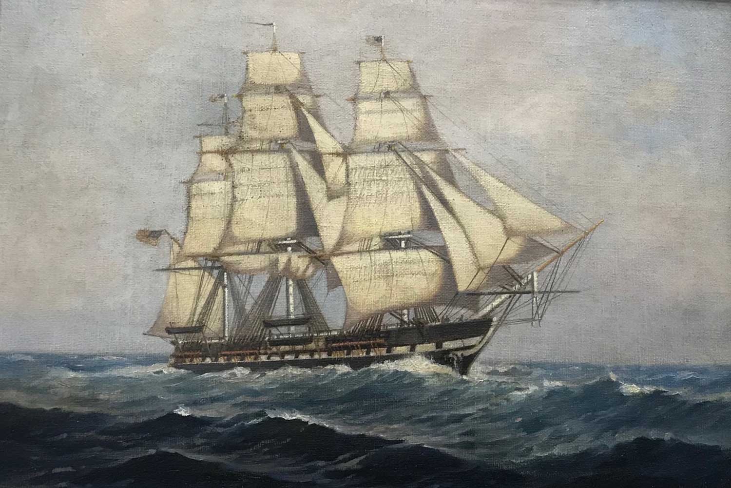Size: framed 24 x 31.5. Medium: oil on canvas. Signed: lower left. Scene: the constitution