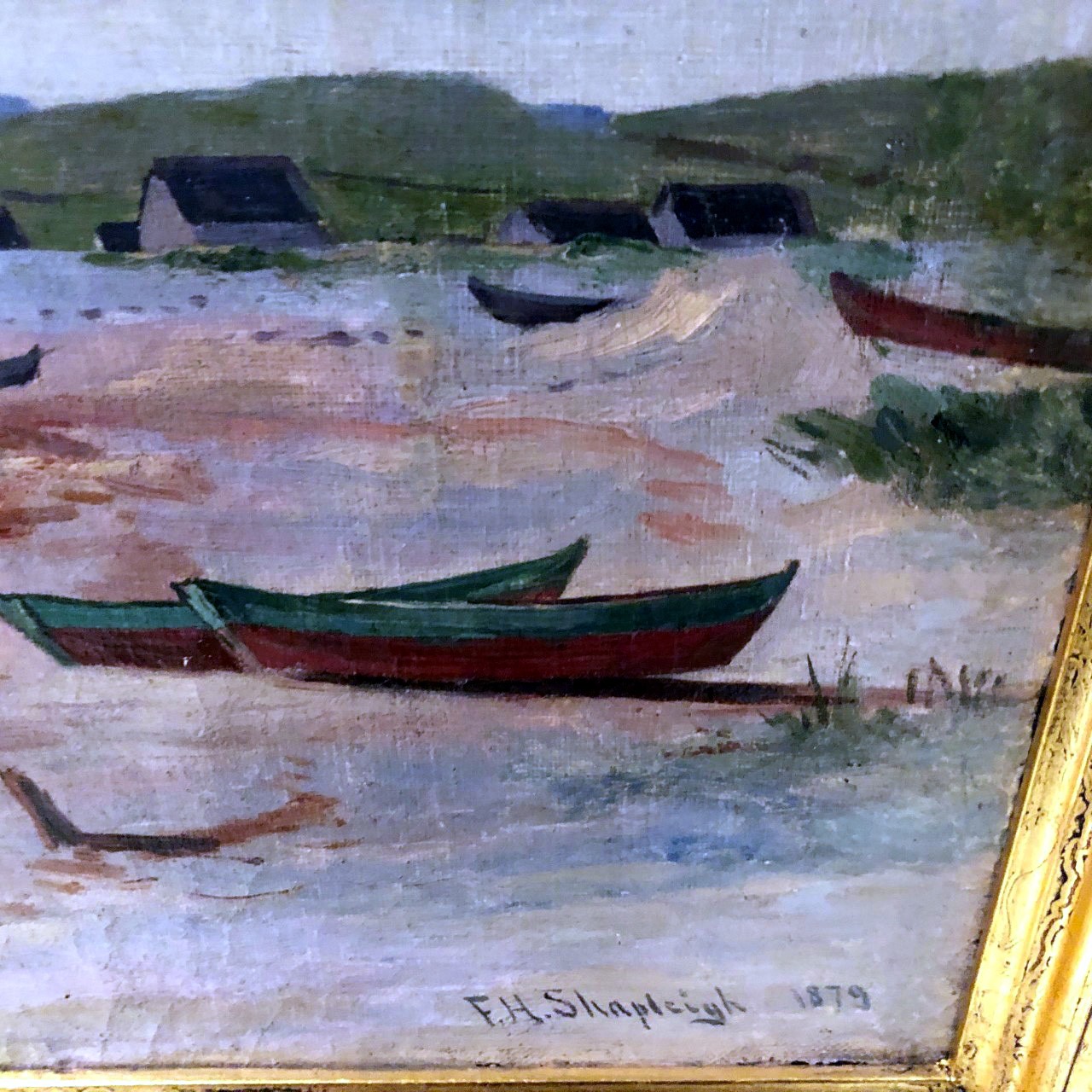 Frank Shapleigh was born in Boston, Massachusetts. He studied at the Lowell Institute of Art before enlisting in the Union Army in 1863. After the war, he studied in Paris with Emile Lambinet. He usually titled his paintings on the back giving valuable information on how the location looked in the time frame.